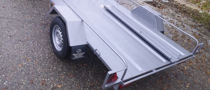 Fabricamos remolques adaptados para el transporte seguro de motos, quads y coches, con estructuras reforzadas y sistemas de sujeción específicos.